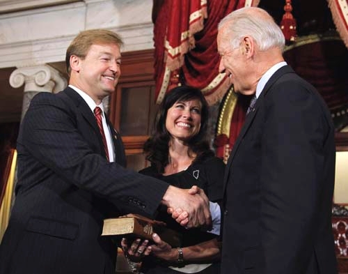 Afterward, Heller and his family wore broad smiles as they joked with Biden during a re-enactment of the swearing-in. They also were guests at a reception Reid hosted later in the day in his Senate office.