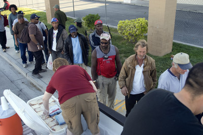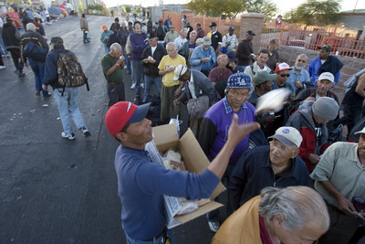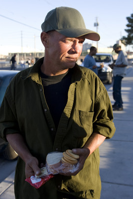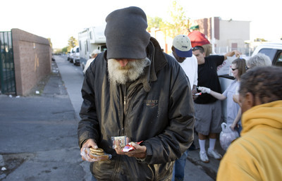 Several people who took sandwiches Wednesday evening said they often missed scheduled meals while looking for work or taking care of other business, such as trying to get new identification or applying for aid.