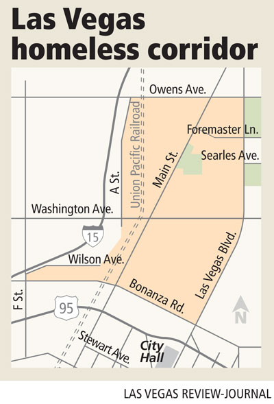 City of Las Vegas crews regularly clean up the litter, urine and feces in the corridor while the homeless pack up their belongings or have them hauled off by the authorities. This has the city in an endless loop, Councilman Ricki Barlow complained in March.