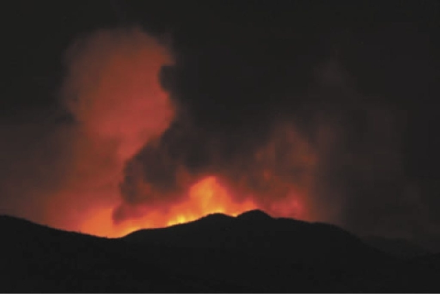 Heavy smoke masking the mountain range made it difficult to accurately gauge the size of the fire, said JoAnn Kittrell, public information officer for the Department of Conservation.