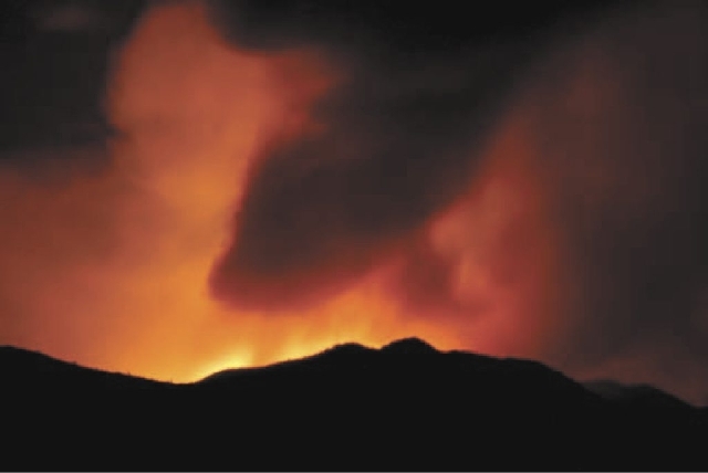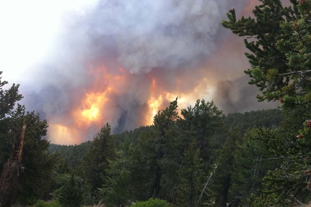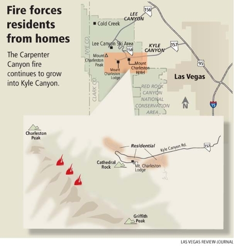 Days after record-breaking temperatures scorched Southern Nevada, winds kicked up, and lightning struck a remote region near Carpenter Canyon on Monday. Residents in Trout, Kyle and Lee canyons were evacuated.