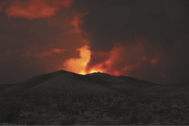 It was unclear Friday exactly how many acres the blaze had torched, but the figure grew from 2,000 to as many as 9,000 acres by midafternoon. The glow of flames was visible from North Las Vegas. Suzanne Shelp, Spring Mountains National Recreation Area trails program manager, said the fire had scorched 9,030 acres.