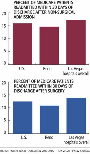 Readmission rates within 30 days for patients in the Las Vegas region -- 13.8 percent for surgical patients and 17.2 percent for patients who had been hospitalized for reasons other than surgery -- were a little more than 1 percentage point worse than the national average, according to the report released by the Robert Wood Johnson Foundation and the Dartmouth Atlas of Health Care on Monday.