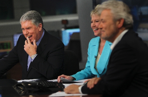 Also on the anchor desk with Waddell for the final signoff was longtime colleague George Knapp, who said it felt like they had been together "since the dawn of history."