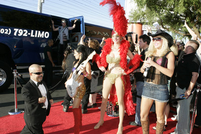 Everywhere you turned, it was L.A.-meets-Vegas. At Saturday's red carpet for "Dark Streets," Bijou Phillips posed for photos by looking over her shoulder as photographers snapped her backside.