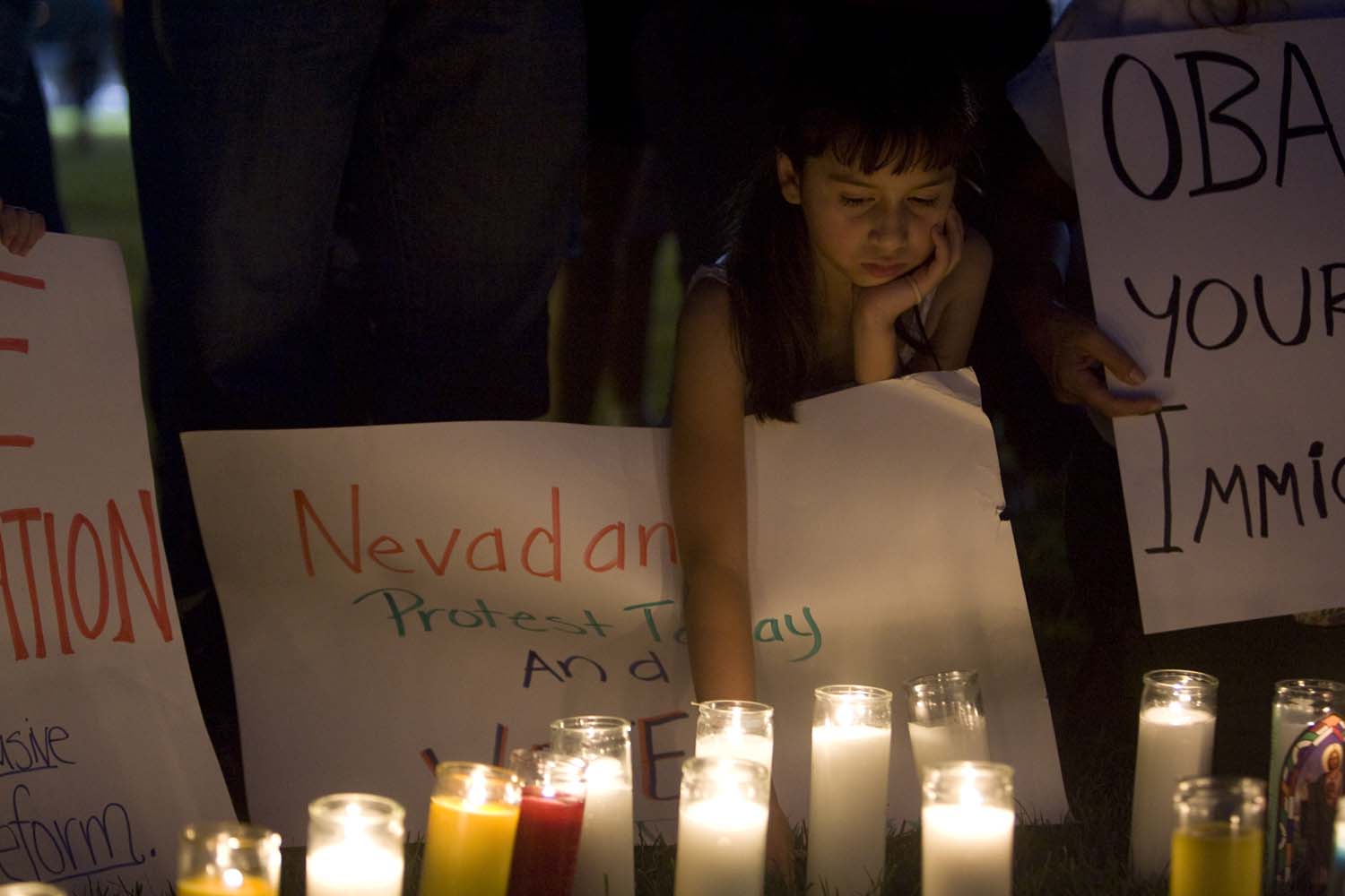 Immigrant rights activists participated in a vigil in support of immigration reform at Hartke Park in North Las Vegas Thursday, July 29, 2010, in the wake of Arizona's new illegal immigration law which was set to take effect Thursday. A federal judge struck down much of the new law. About 60 people participated in the vigil.