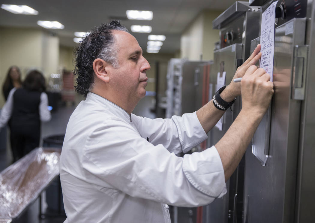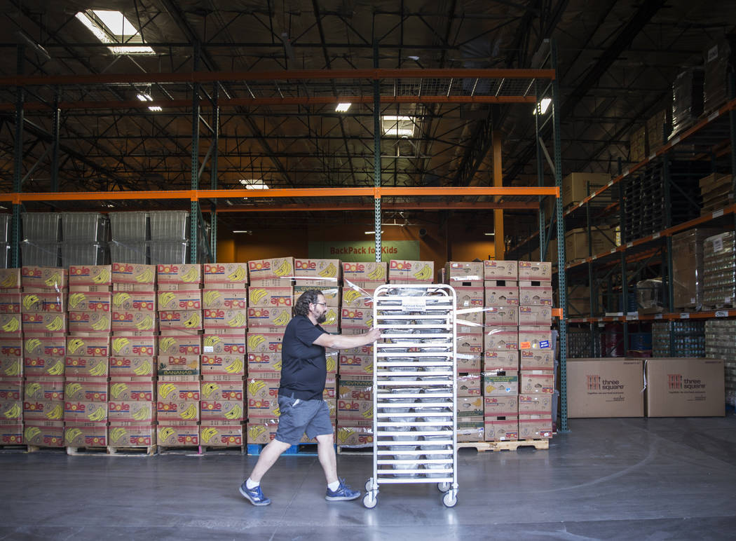 Then it was back to Three Square headquarters, 12 miles away in northeast Las Vegas, where the pans would be unloaded, temperature-checked again and moved to a blast chiller that would cool the food to 41 degrees in about 30 minutes. Food later would be moved into one of two 2,200-square-foot storage freezers and await pickup by the food bank’s member nonprofits. Agency representatives consult a computerized listing to find out what’s available and when it was acquired and can purchase it for 19 cents a pound for meats and other proteins, 9 cents a pound for other food.
