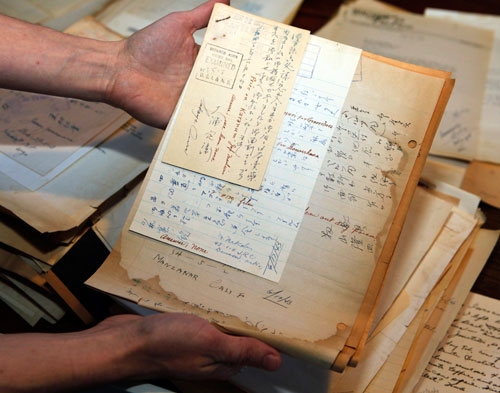 About 250 letters and postcards, along with war-time advertisements and catalogs, came tumbling out of the wall at a historic brick building on the outskirts of downtown. The reason they were in the wall and how they got there are a mystery, particularly because other documents were out in the open.