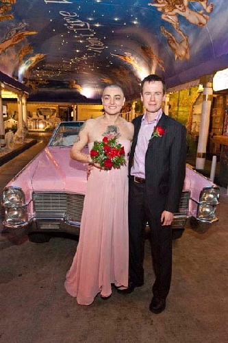 Officiating was chapel owner Charolette Richards, who said she comped the wedding, including the pink Cadillac convertible package, which usually goes for $325 to $599.