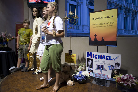 The Michael Jackson made of wax stood there, silently, as throngs of passers-by stopped to take a picture next to him.