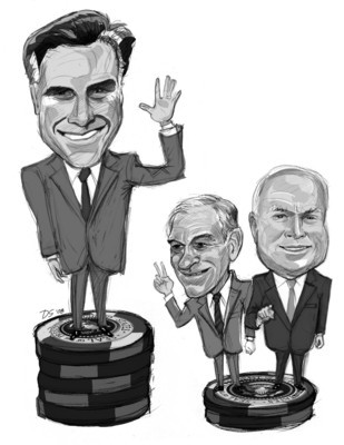 The caucusing capped a whirlwind week that put an unprecedented political spotlight on Southern Nevada, and saw the three leading Democratic candidates -- Clinton, Barack Obama and John Edwards -- and Republicans Romney and Ron Paul making multiple stops in the state.