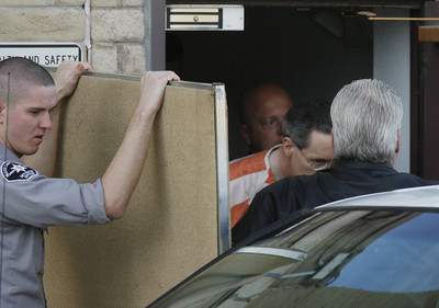 About a dozen Jeffs followers, neatly dressed in black suits and ties, watched him being escorted into the courthouse handcuffed and shackled. Jeffs wore an orange and white striped jail jumpsuit.