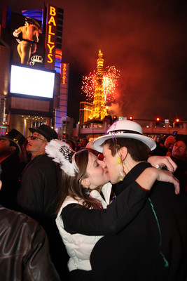 Tourism officials expected 303,000 people to visit Las Vegas for the celebration. Some of them paid big-ticket prices for star-studded parties at various Strip nightclubs. Thousands more braved the chilly air to party on Las Vegas Boulevard and see the fireworks show in the sky and the oddballs on the street.