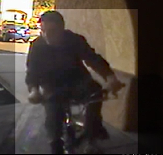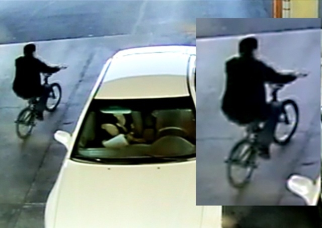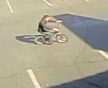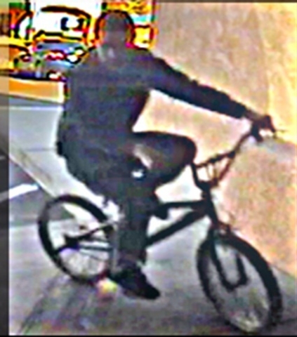 Witnesses described one robber as a man from 18 to 25 years old, from 5 feet 10 inches to 6 feet tall and weighing approximately 150 pounds. He was last seen wearing a gray shirt, black pants and a black baseball hat while riding a black and red bicycle.