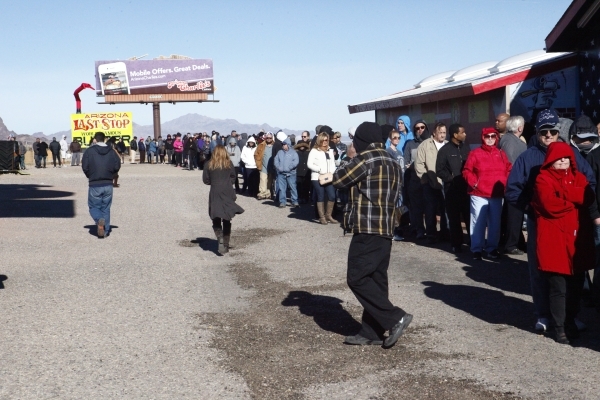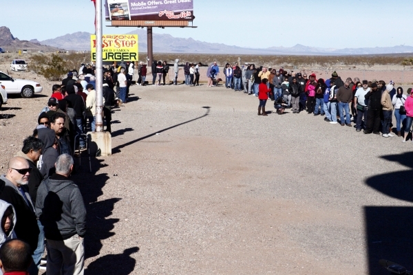 WHITE HILLS, Ariz. — Hundreds lined up outside the Last Stop convenience store Tuesday for the chance to become billionaires.