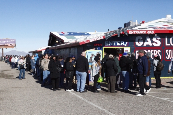 A convenience store about 44 miles southwest of Las Vegas near Primm Valley remains a popular location, but many people are willing to drive about 60 miles to stores in Arizona such as Last Stop and Rosie's Den Cafe that claim to have shorter wait times.