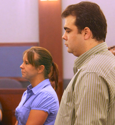 Two co-defendants in the case appeared briefly Wednesday in a Las Vegas court. Christopher Edwards, 33, and Amy Busefink, 26, didn’t comment on the charges against them.