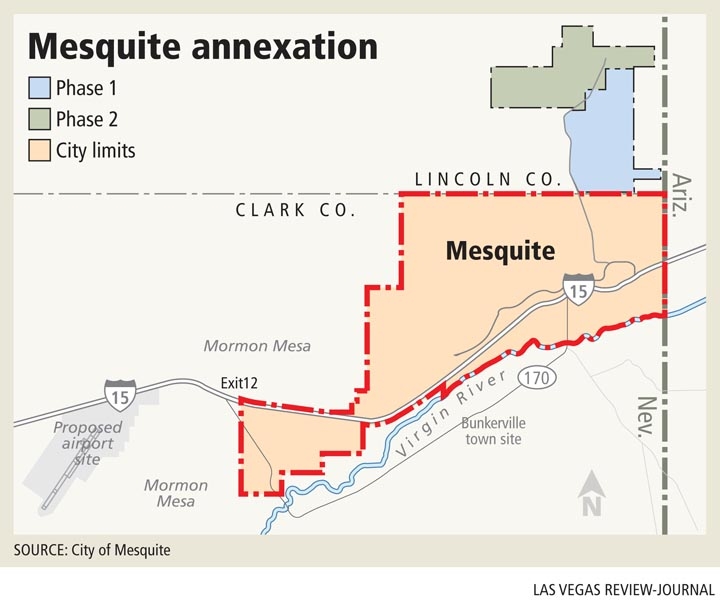 The first phase of Mesquite's annexation in Lincoln County is scheduled to take effect Dec. 10. Barring a court order or a change of heart, the City Council will vote Jan. 11 to annex the second phase, another 2,722 acres that would expand the city deeper into Lincoln County.