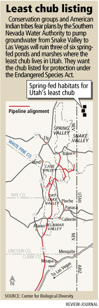 A small fish that swims in a half-dozen spring-fed ponds and marshes in Utah should be protected from a plan by the Southern Nevada Water Authority to pump groundwater "for runaway growth in Las Vegas," conservation groups said Wednesday.