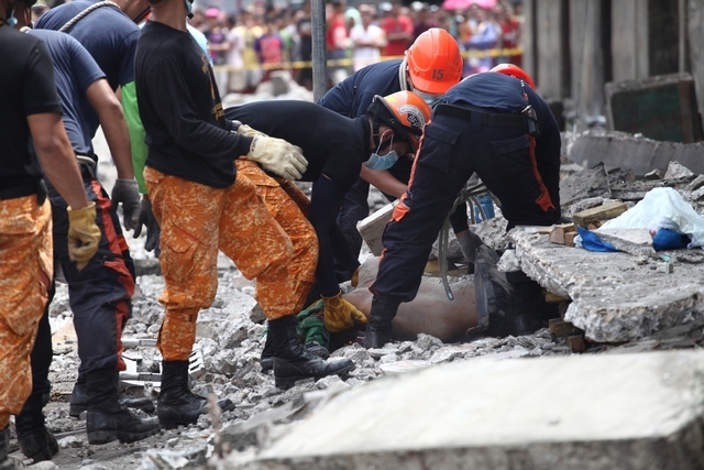 The quake set off a stampede in a Cebu gym where people lined up to receive government cash assistance, killing five and injuring eight others, said Neil Sanchez, provincial disaster management officer. In another city nearby, 18 people were injured in the scramble to get out of a shaking building where the assistance was being handed out.