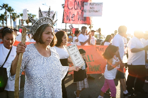 "Voters need to put their (politicians') feet to the fire," said longtime local immigration attorney and activist Vicenta Montoya, who donned a full Statue of Liberty costume for the event. "We desperately need reform, sooner rather than later."