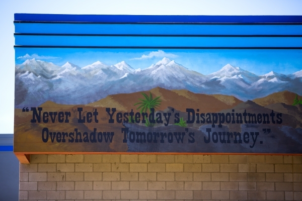 On the side of the main building facing the courtyard, a newly painted mural depicts a miner in the Silver State surrounded by a vast valley. On the bottom left side, the mural reads, “Never let yesterday’s disappointments overshadow tomorrow’s journey.”