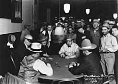 Although legal gambling is usually considered to date from 1931, said Harold, five games were legal in the 1920s — stud, draw and lowball poker, “500,” and bridge. No other games were then offered in Las Vegas, he said. “We had a tough sheriff then, Sam Gay. You could do it if it was in the book, and if it wasn’t, you couldn’t. I never gave anybody bribes but Sam couldn’t be bought anyway; he wouldn’t take a nickel from Jesus Christ.