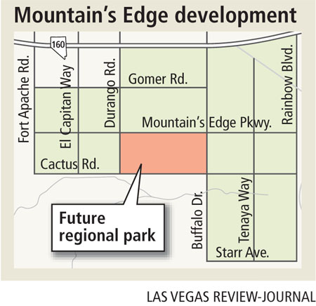 Two other parks will have all of the features originally planned. Work on those will start when the number of homes built in Mountain's Edge reaches a certain threshold. That could take several years, giving the company time to rebound financially, county officials said.