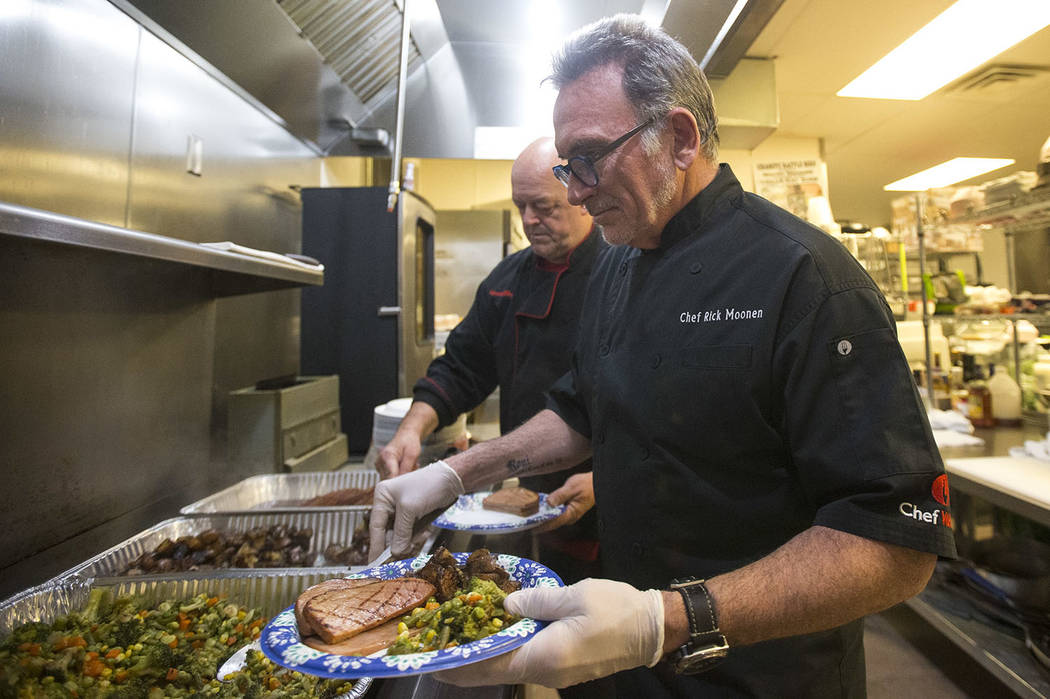 Moonen, who operated his two restaurants at The Shoppes at Mandalay Place for 14 years and is looking to create an off-Strip restaurant, joined others in serving a community dinner at the Veterans of Foreign Wars Post 10047 just outside of North Las Vegas on Thursday night. The post starting holding weekly community dinners for veterans who were at least 60 years old in October, said the dinner project’s manager, Mikey Kelly.