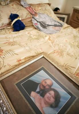 As she stood in her new living room, Patt Sprague hugged her husband’s cutout, which now has rips in the shoulder area, and shook her head.