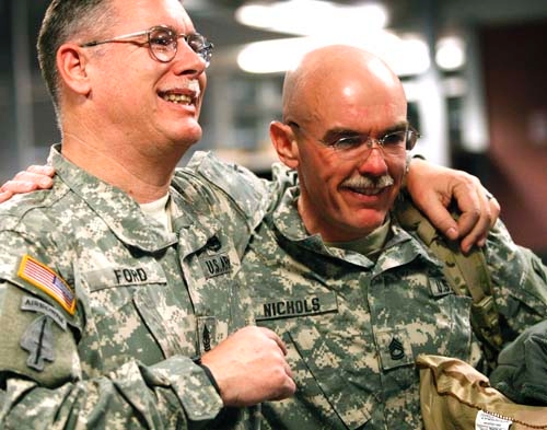Ford and Nichols spoke about their commitment to serve as the 30 Vegas Desert Rats boarded a red-eye flight last week from McCarran International Airport on the first leg of their journey to a training base in New Jersey before eventually heading to Afghanistan.