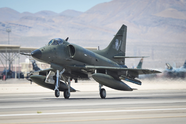 The F-35B Lightning IIs have short takeoff and vertical landing capabilities, but the two that flew in Tuesday afternoon’s session used conventional runway takeoffs to launch into the skies over the 2.9 million-acre Nevada Test and Training Range north of the Las Vegas Valley.