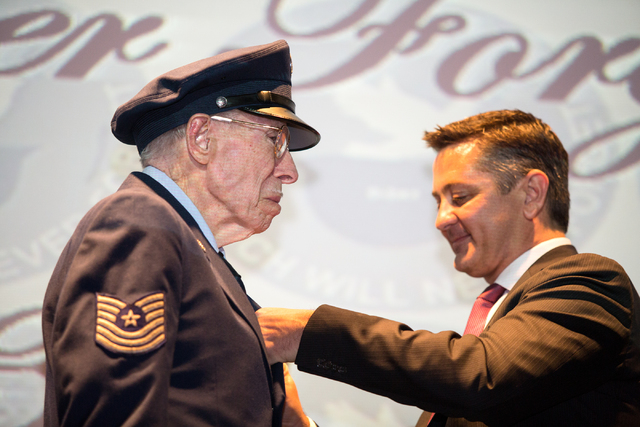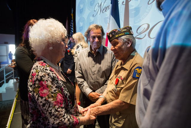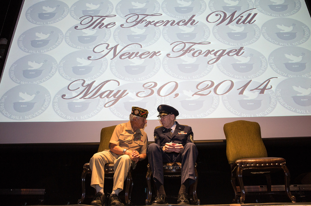 The medals were presented to the World War II vets by Eric Auger, the honorary consul of France in Southern Nevada. The National Order of the Legion of Honor award gives the men the rank of “chevalier” or knight. It is the highest honor France bestows on its citizens and foreign nationals.