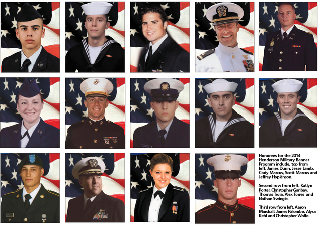 The city of Henderson is set to also honor Alysa Kehl and Katlyn Porter in the Air Force; Jeffrey Hopkinson in the Army National Guard; Thomas Troia in the Coast Guard; Christopher Garibay and Christopher Wolfe in the Marines; and Nathan Swingle in the Navy.