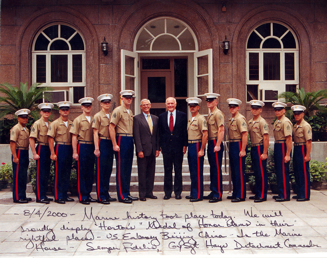 They took along some personal items — their grandfather’s VFW cap, his Medal of Honor citation and some of his photographs from the Boxer Rebellion — for the Marine detachment to have at the U.S. Embassy in Beijing.