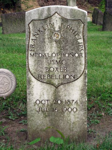 Fisher was killed July 16, 1900, by heavy enemy fire while erecting barricades. “He gallantly gave his life for his country,” reads the citation for “Fisher,” whose real name was Franklin J. Phillips of McKeesport, Pa. A former U.S. Army soldier who served in the Spanish-American War, he had joined the Marines under an alias.