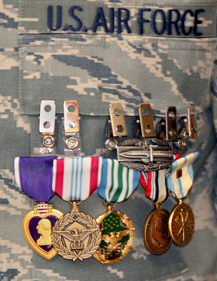 For that, the Air Force Reserve Command commander, Lt. Gen. John A. Bradley, clipped a Purple Heart medal to the breast pocket flap of Jones' basic duty uniform.