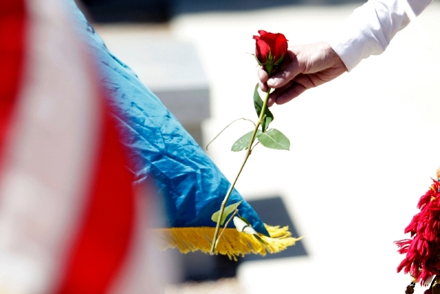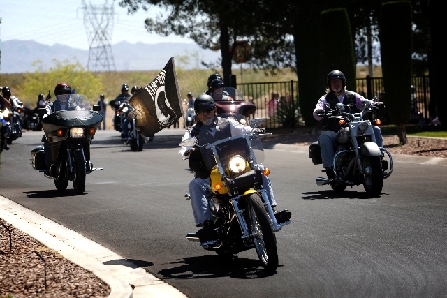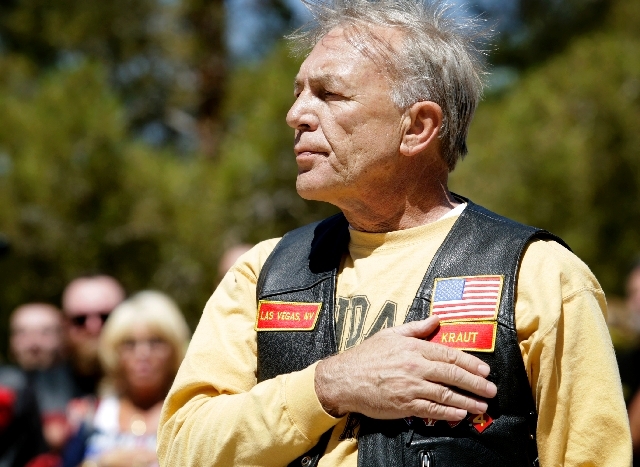 Flags fluttered, hundreds of motorcycle engines rumbled and people rose to their feet as the presentation of the colors commenced, kicking off this year’s Memorial Day ceremony at Southern Nevada Veterans Memorial Cemetery in Boulder City.