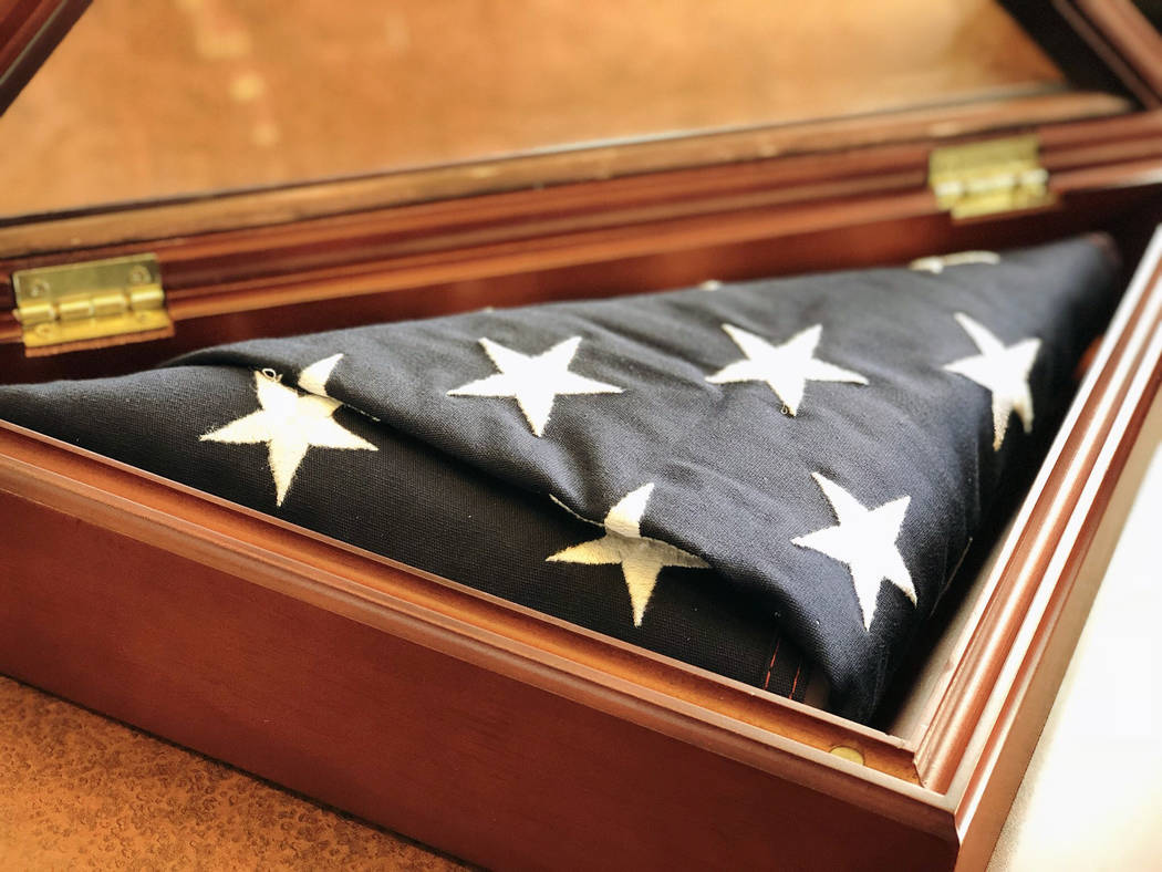 “Oh, thank God,” he recalled saying aloud after examining the memorial case. The American flag, protected only by the box and a sheet of glass, had not touched the ground.