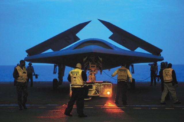 ABOARD THE USS GEORGE H.W. BUSH — The Navy for the first time Tuesday launched an unmanned aircraft the size of a fighter jet from a warship in the Atlantic Ocean, as it wades deeper into America’s drone program amid growing concerns over the legality of its escalating surveillance and lethal strikes.