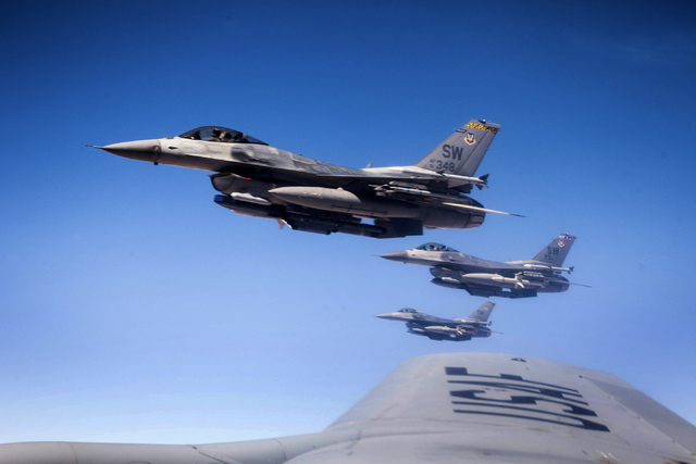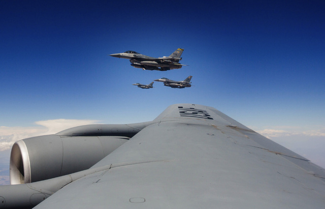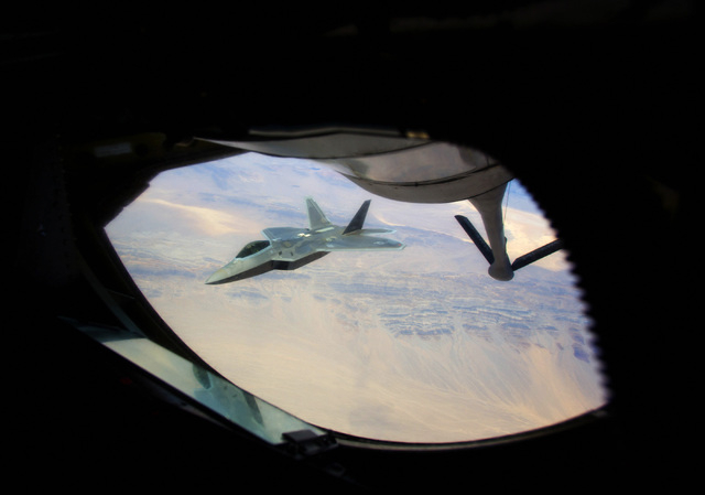 A KC-135 Stratotanker from the 93rd Air Refueling Squadron from Fairchild Air Force Base, Wash. served as a gas station in the sky for many aircraft participating in Red Flag exercises over the Nevada Test and Training Range.