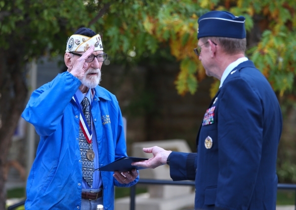 He was honored by Gov. Brian Sandoval's staff at a ceremony at the USS Nevada Memorial on the Capitol grounds. In addition to a proclamation and other gifts, Sehe got to ring the original bell from the Nevada.