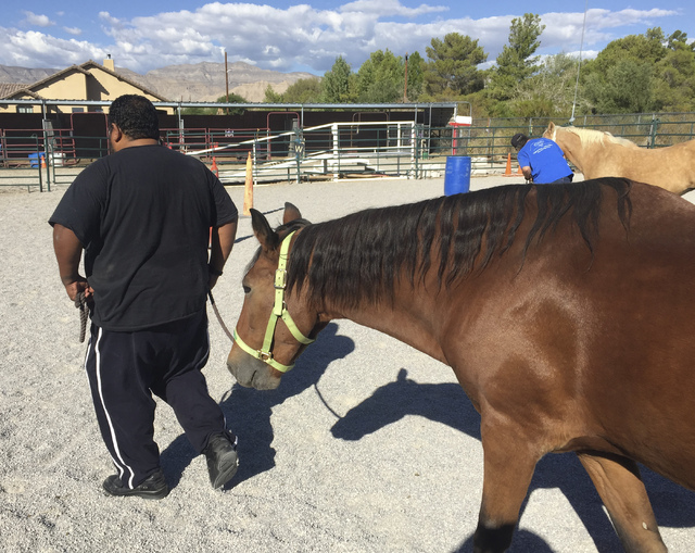 “I enjoy being around the surrounding,” Hernandez said of the Spirit Therapies corral in the northwest Las Vegas Valley, where the program is held, stroking Pablo’s coat as he talked. “I don’t have to be afraid or anything like that, or too anxious.”