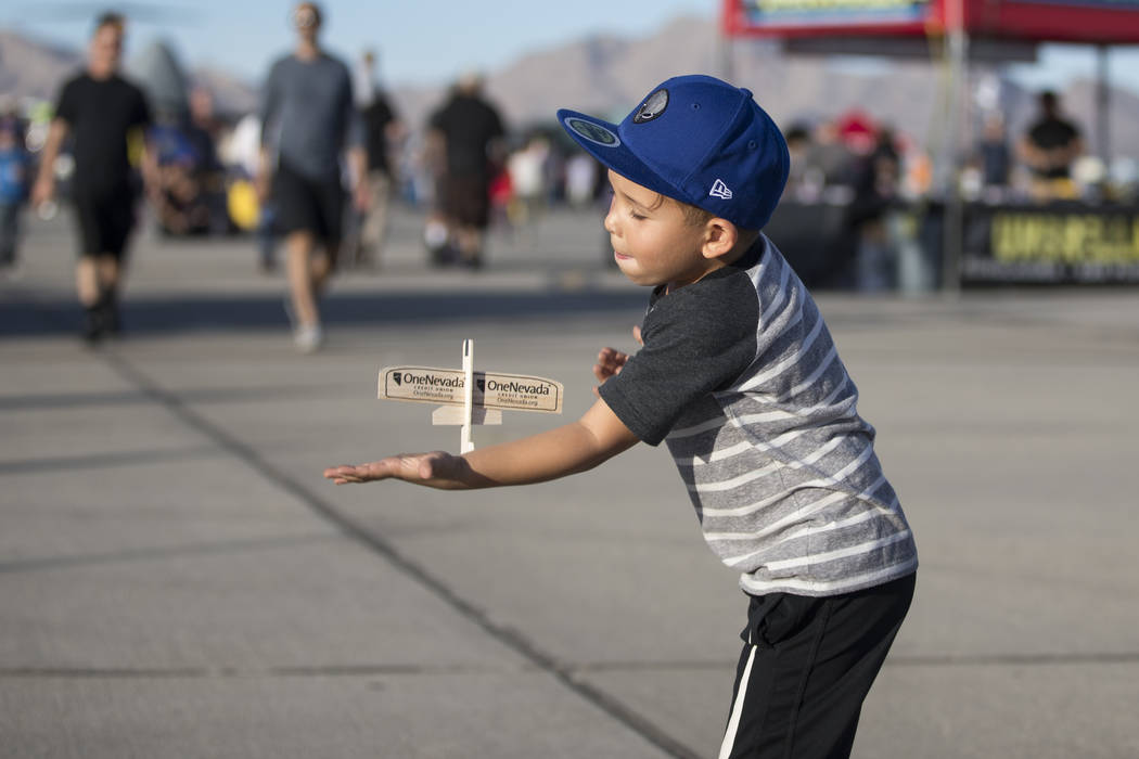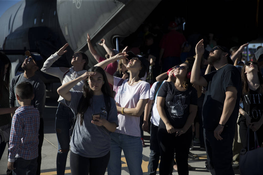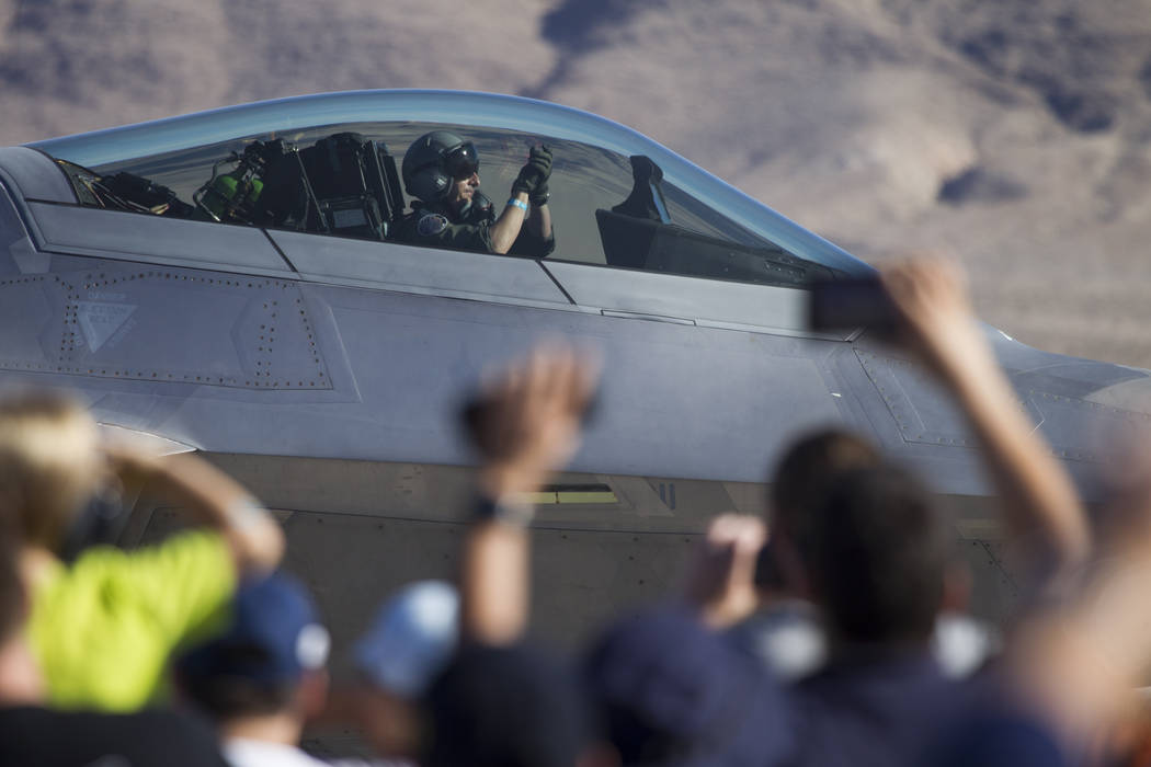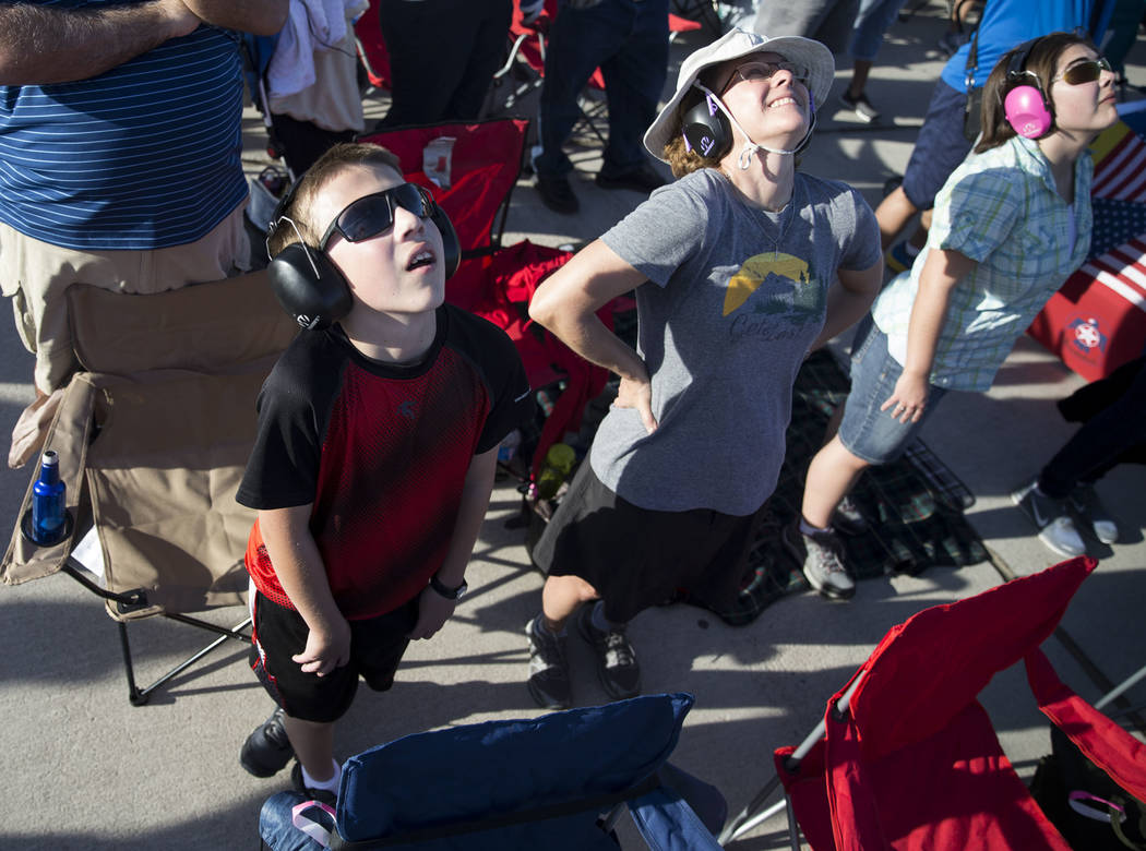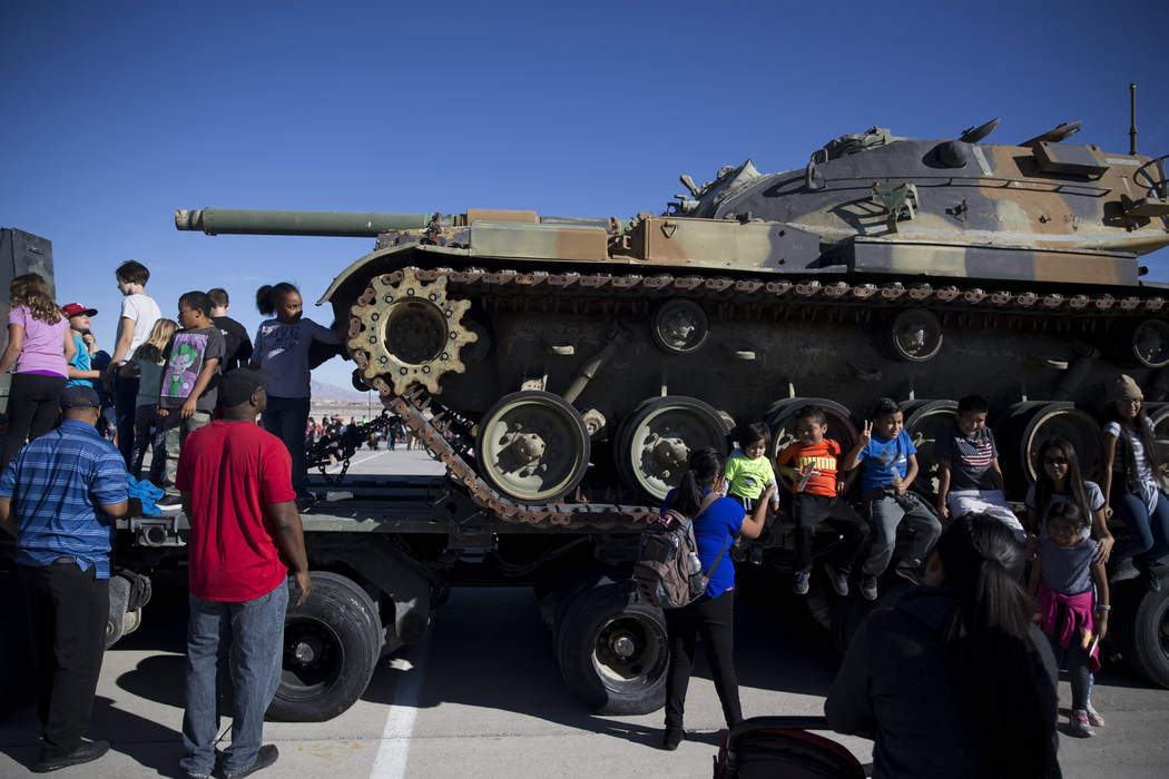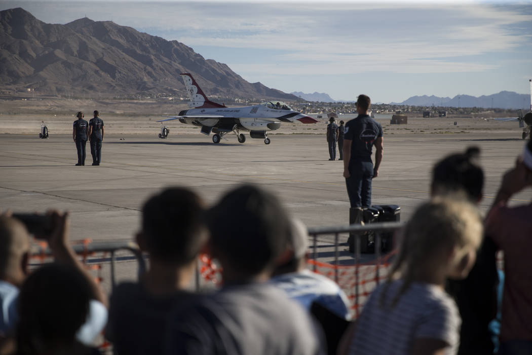 Thousands of visitors came to the show early to get the best spots. Cars lined up for about a mile to park at Las Vegas Speedway, where buses board waited to scoot people to Nellis.