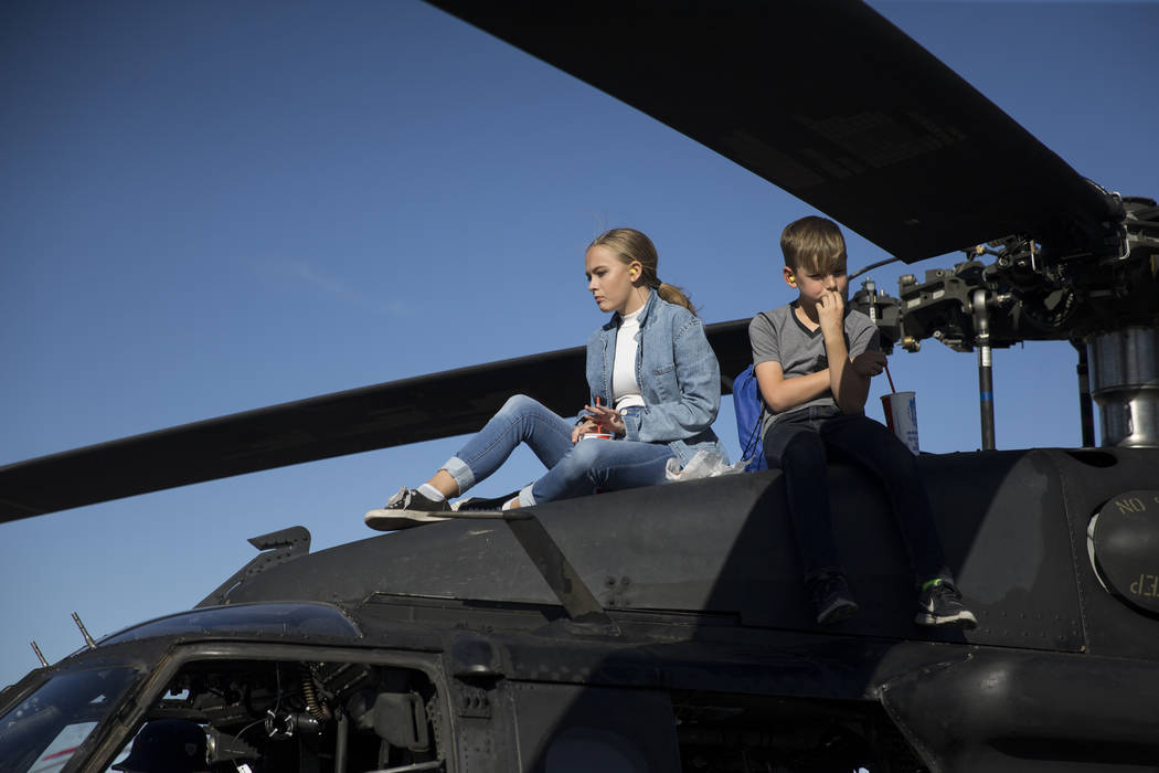 Children climbed into the aircraft on display, such as an AC-130 Gunship, C-5 cargo aircraft and MH-60M assault helicopter as their parents snapped photos of them at play. Kiosks on grounds hawked T-shirts, hats and model planes.