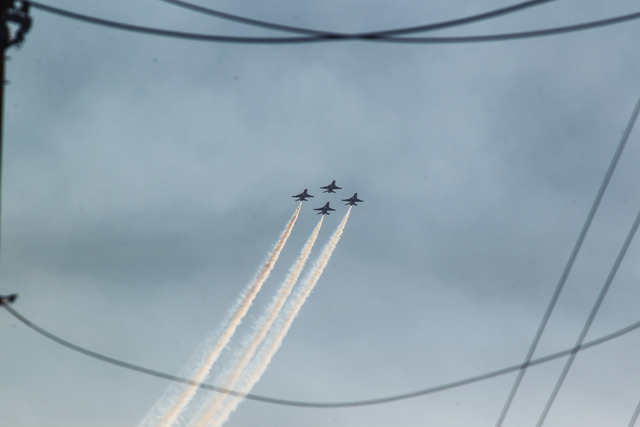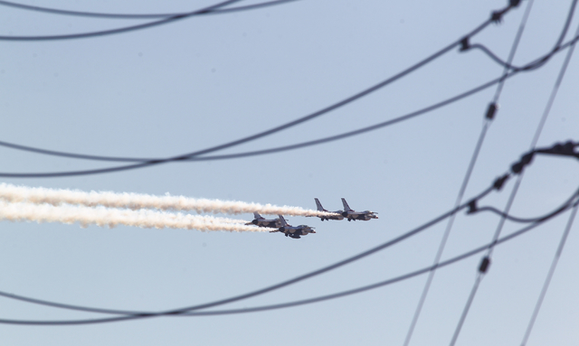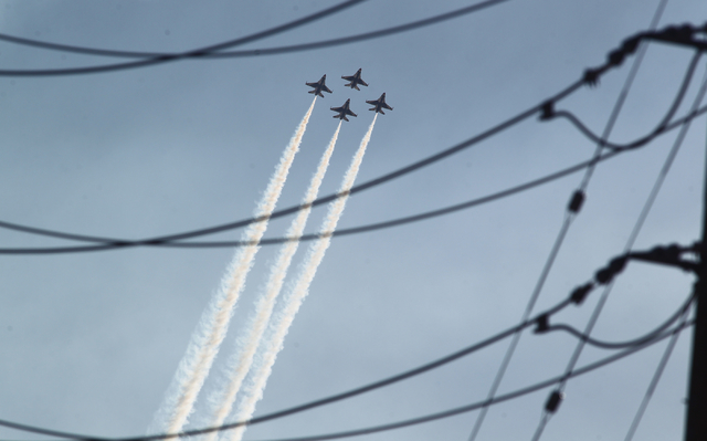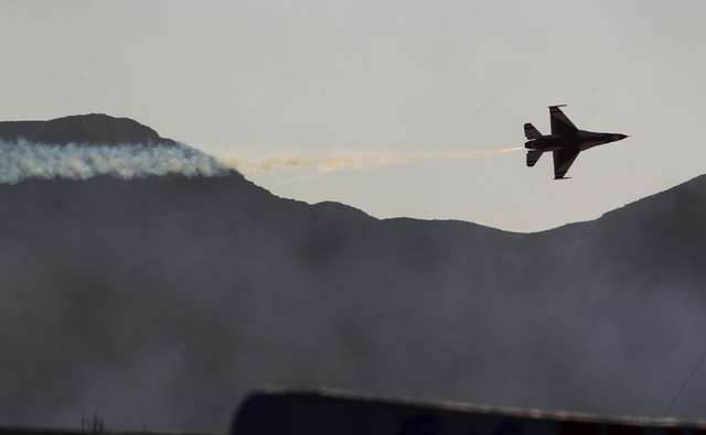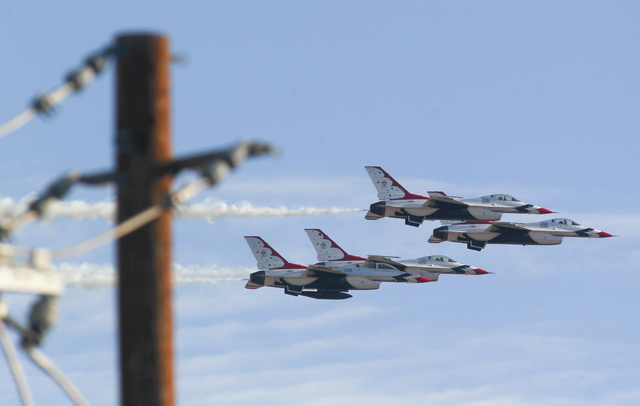 The U.S. Air Force Thunderbirds were out flying in formation around Nellis Air Force Base on Wednesday.