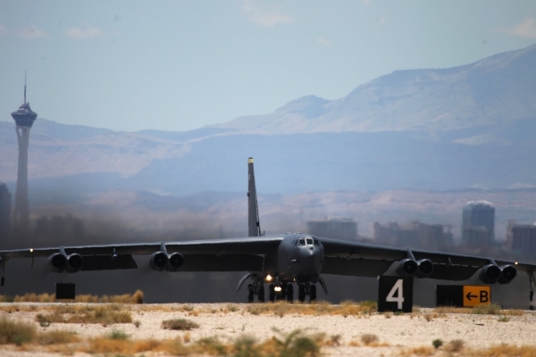 A B-52H from the 69th Bomber Squadron at Minot Air Force Base, N.D., gets ready to launch during a Red Flag exercise at Nellis Air Force Base in Las Vegas Tuesday, July 21, 2015. (Erik Verduzco/Las Vegas Review-Journal) Follow Erik Verduzco on Twitter