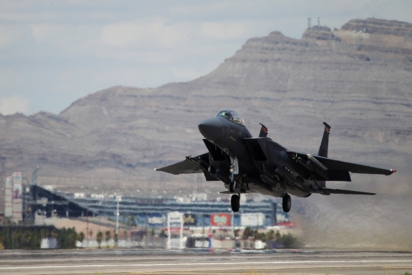 An F-15E Strike Eagle from Mountain Home Air Force Base, Idaho, takes off during a Red Flag exercise at Nellis Air Force Base in Las Vegas Tuesday, July 21, 2015. (Erik Verduzco/Las Vegas Review-Journal) Follow Erik Verduzco on Twitter