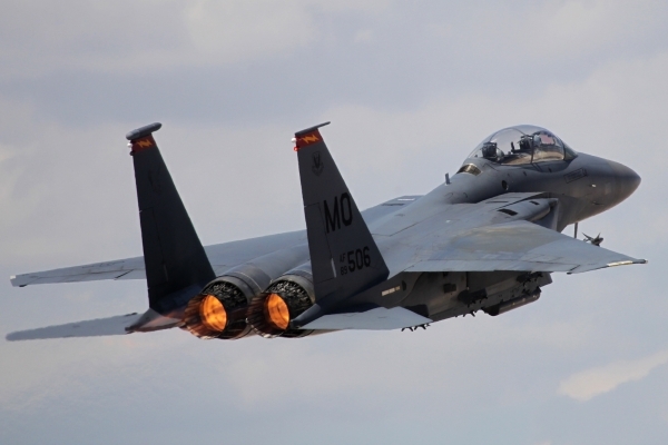 An F-15E Strike Eagle from Mountain Home Air Force Base, Idaho, flies off during a Red Flag exercise at Nellis Air Force Base in Las Vegas Tuesday, July 21, 2015. (Erik Verduzco/Las Vegas Review-Journal) Follow Erik Verduzco on Twitter