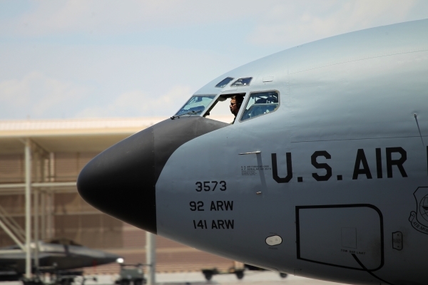 A KC-135 Stratotanker from the U.S. Air Mobility Command gets ready to launch during a Red Flag exercise at Nellis Air Force Base in Las Vegas Tuesday, July 21, 2015. (Erik Verduzco/Las Vegas Review-Journal) Follow Erik Verduzco on Twitter